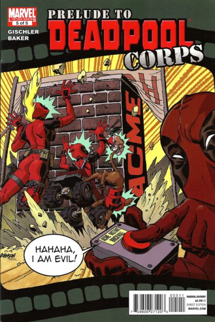 Plot : Written by VICTOR GISCHLER Penciled by KYLE BAKER Cover by DAVE JOHNSON Witness the birth of the most important super hero team ever in a universe-spanning event that will rock the month of March! Wade Wilson has been tapped to save the Universe, and to do that he’s going to need help. Enter: The sexy-but-insecure Lady Deadpool! The devious-but-lovable Headpool (a.k.a. the Zombie Deadpool Head)! The bratty-but-brilliant Kidpool! And the irascible mutt known as Dogpool! Individually, they’re, well, kind of messed up, but together, they’re the unstoppable force know as DPC. Issue #1 40 PGS./Parental Advisory ?$3.99 Issue #2-#5 32 PGS./Parental Advisory ?$2.99